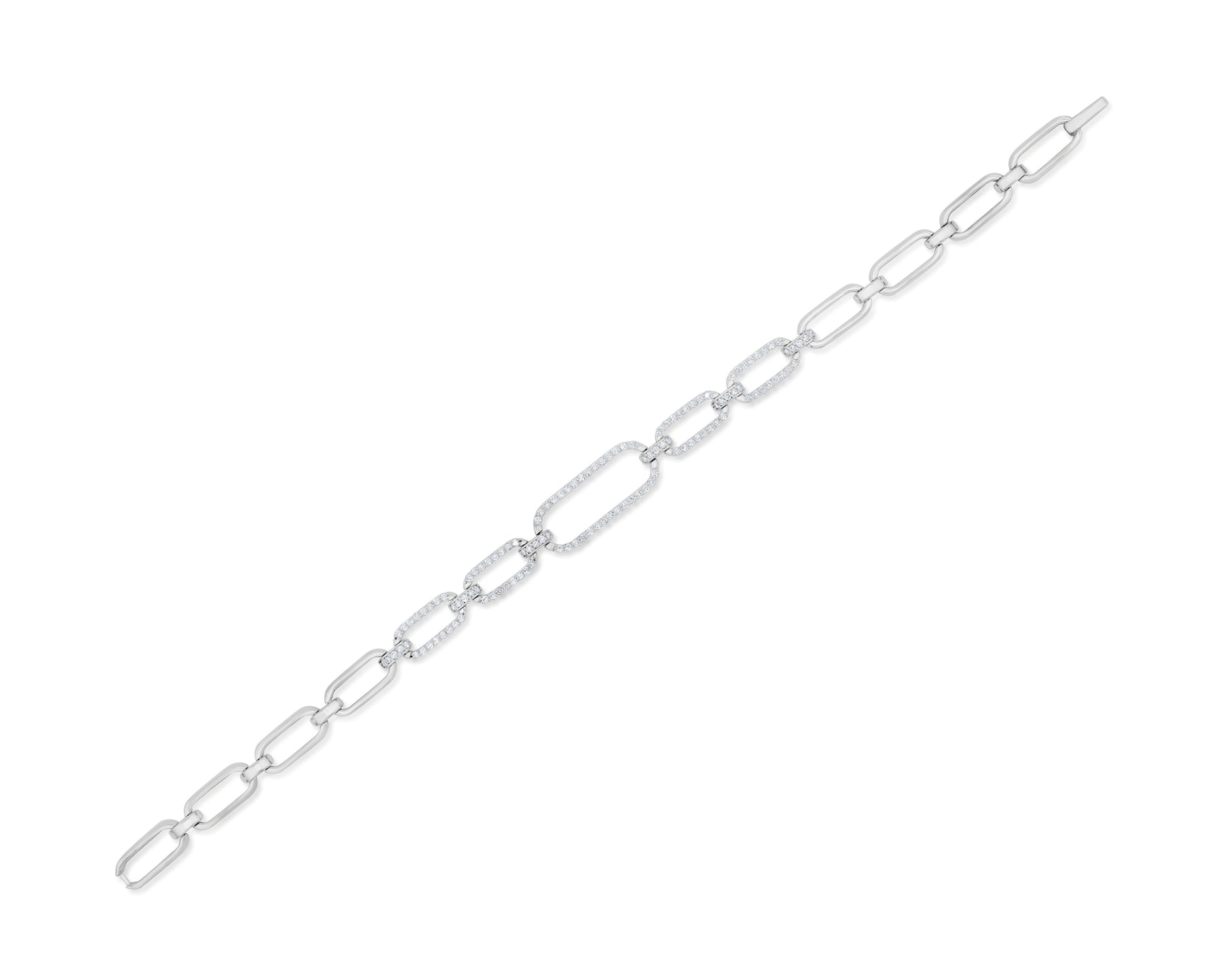 Sleek and seamless, this diamond link bracelet features over 1 carat of pavé-set brilliance with a clasp designed to flow perfectly within the links. Its fluid design and hidden closure offer a sophisticated look that’s both secure and stunning.