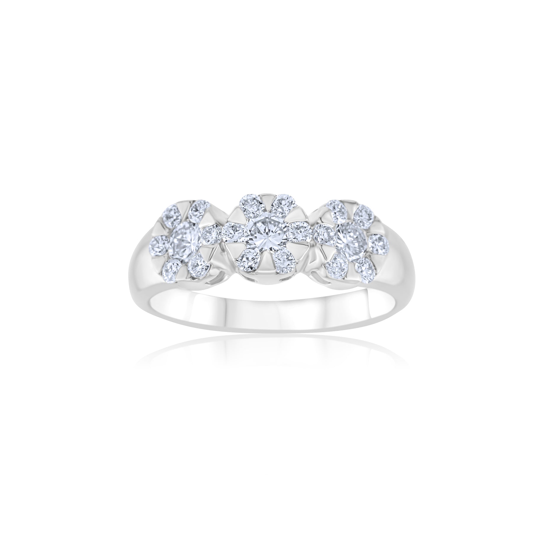 Delicate blossoms of light bloom across this band, each diamond flower radiating with timeless charm. Feminine and elegant, it captures the poetry of nature transformed into everlasting brilliance.