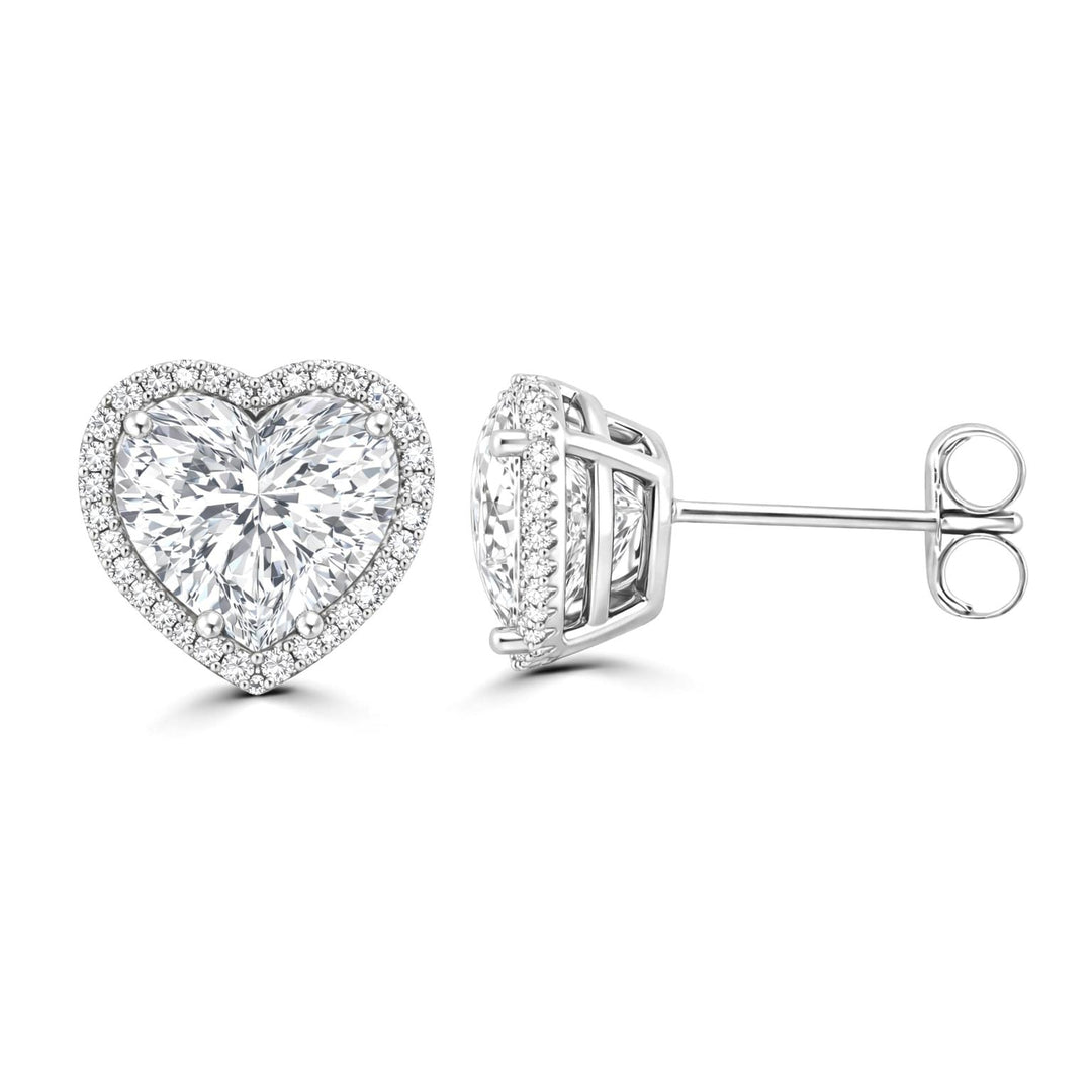 Platinum Heart-Shaped Lab Diamond Halo Stud Earrings ~ 2 ½ Ct
