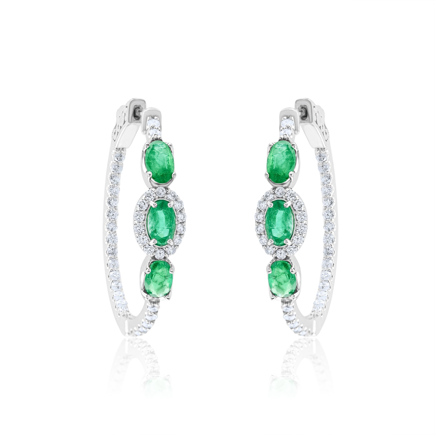 Radiating timeless elegance, these open hoop earrings frame vibrant green emeralds in a halo of brilliant diamonds, capturing the essence of romance in every sparkle. Their graceful curve and luminous shimmer make them a breathtaking statement for both day and night.