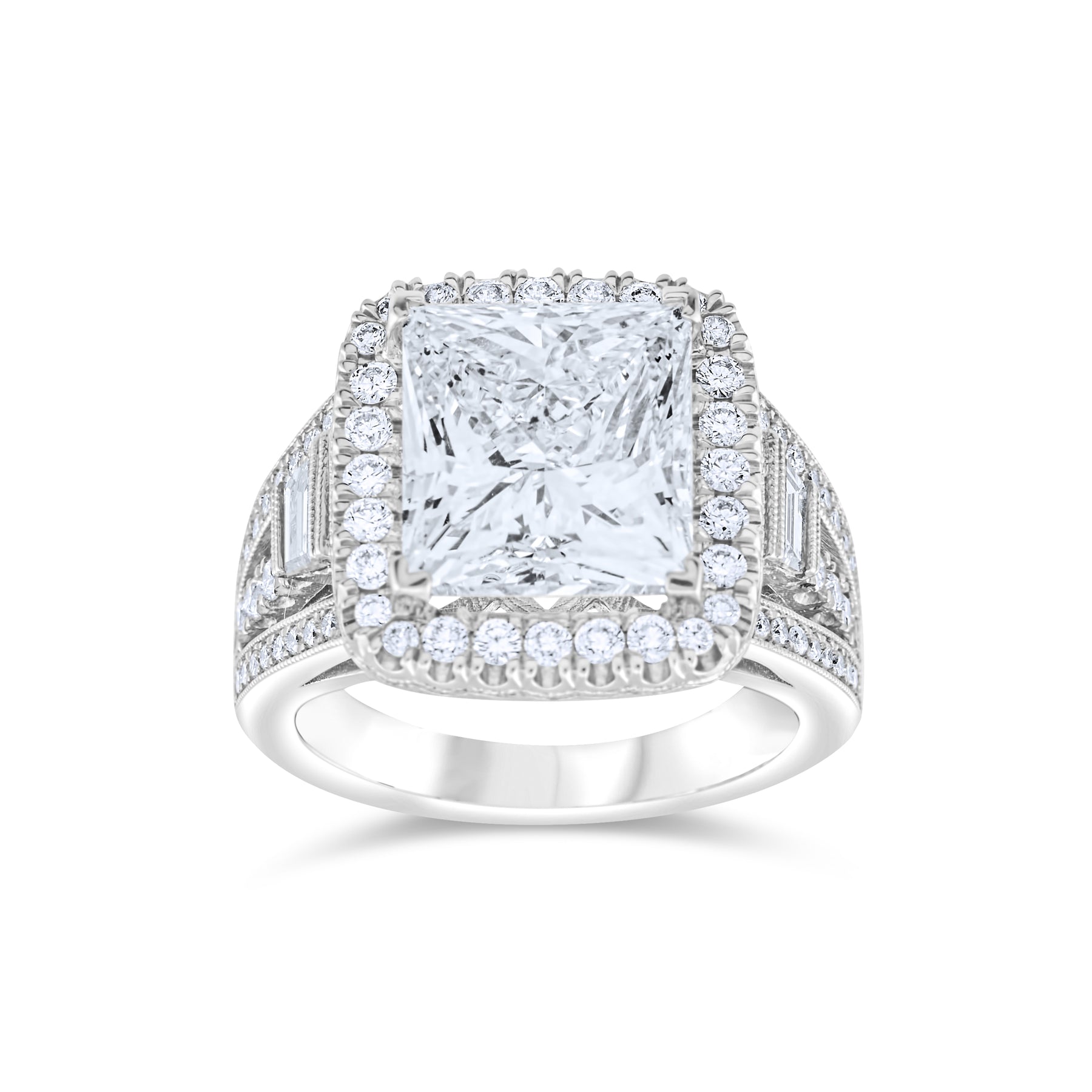 14K White Gold Diamond Halo Princess Cut Statement Ring ~ 7 ½ Ct