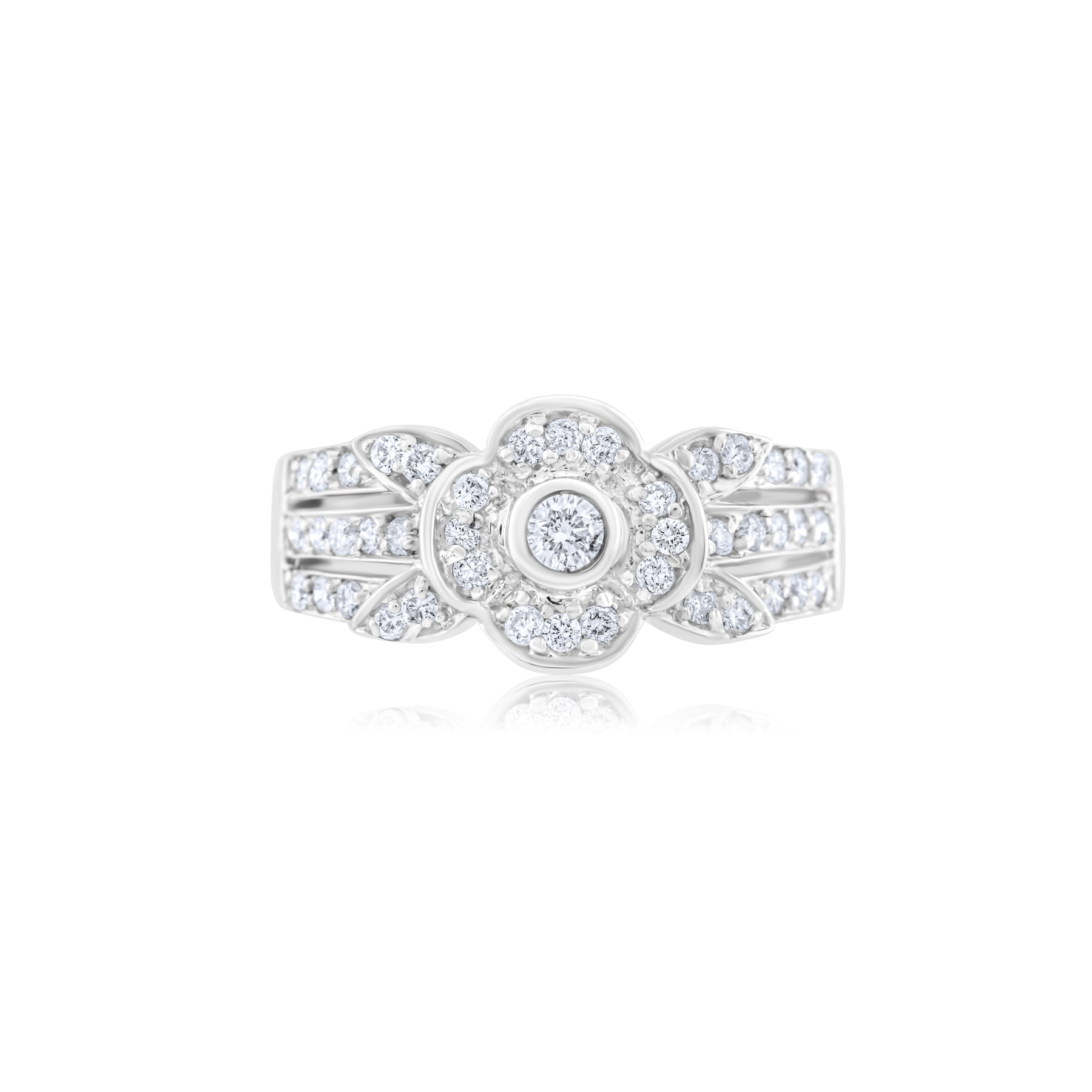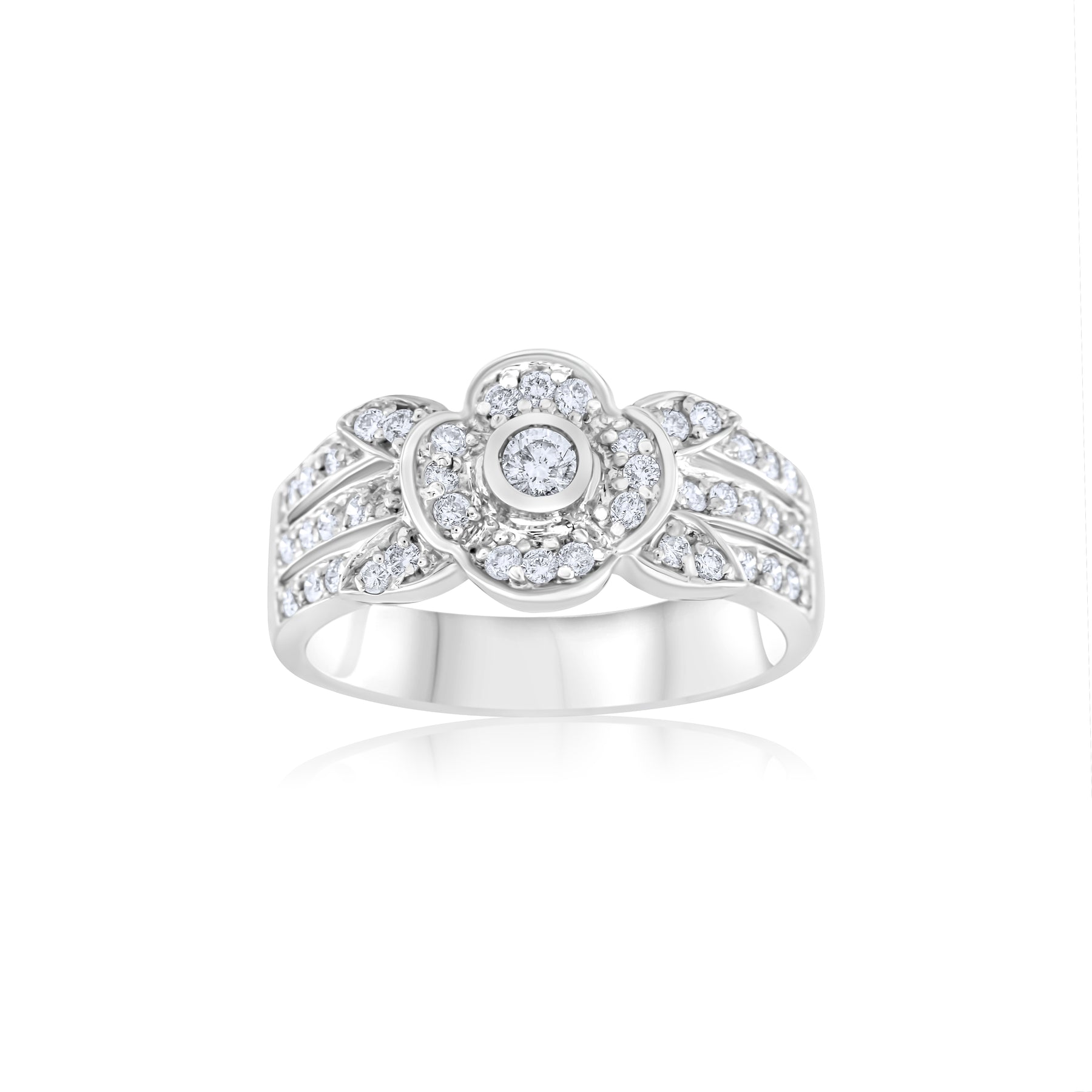 18K White Gold Diamond Floral Ring ~ ½ Ct