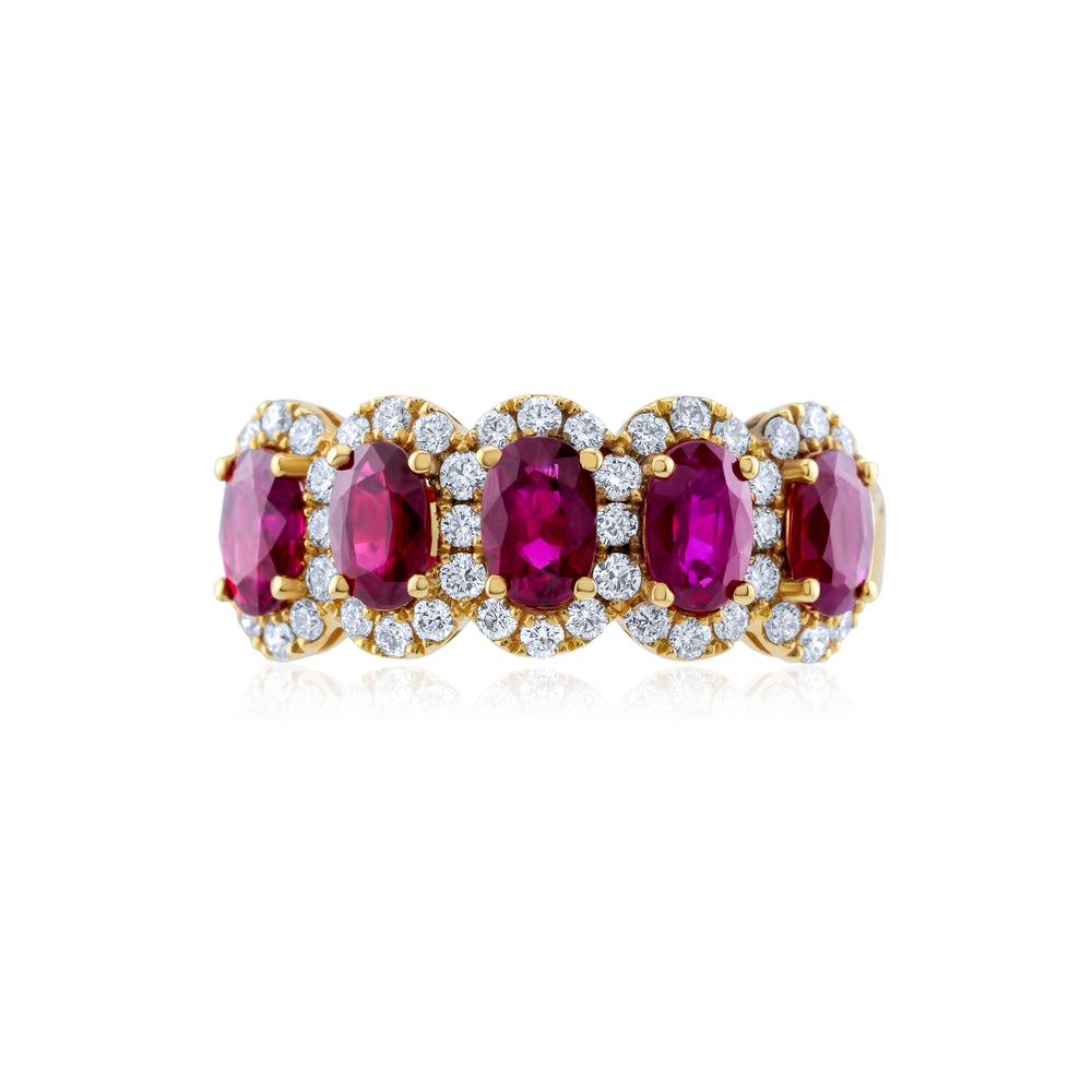 14K Yellow Gold Diamond & Ruby Men’s Ring ~ 5 Ct