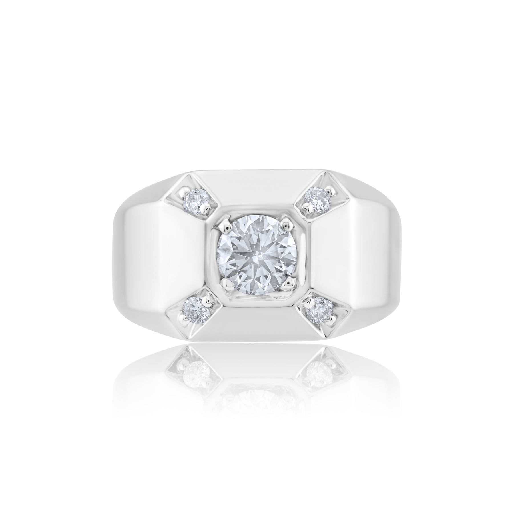 Commanding in presence, this men’s ring features a clarity-enhanced center diamond framed by bold architectural lines. A statement of power and refinement, it embodies masculine confidence with enduring sophistication.