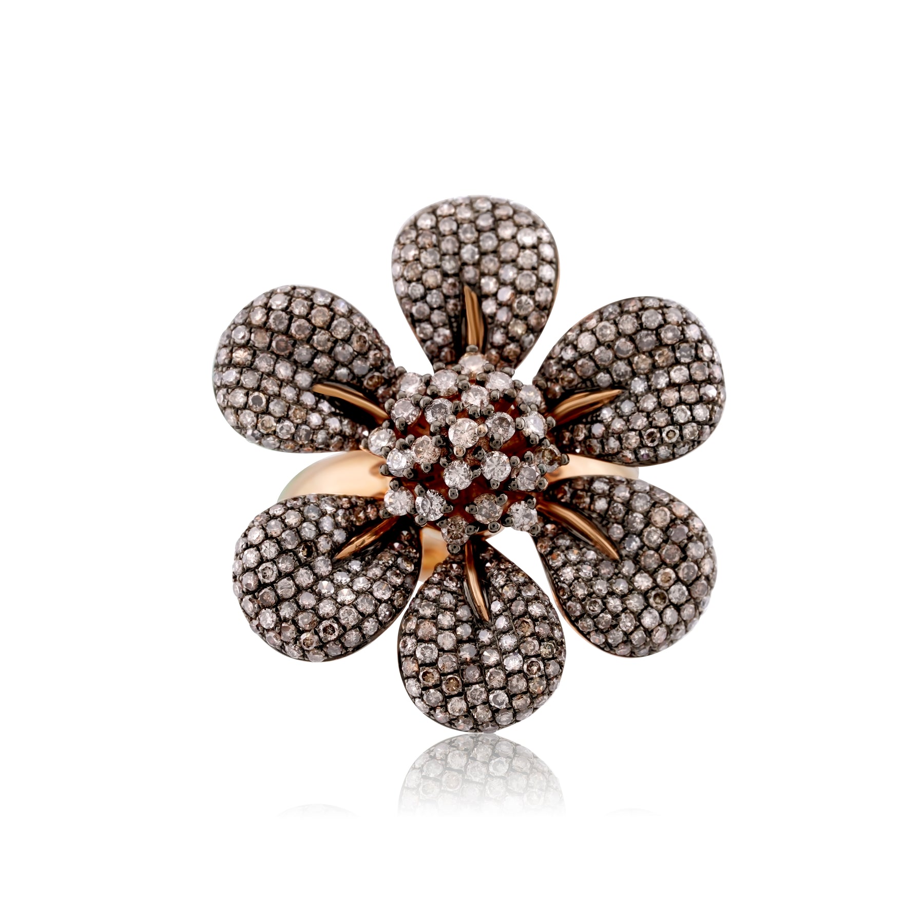 14K Rose Gold Champagne-Color Diamond Flower Fashion Ring 3 1/3 Ct