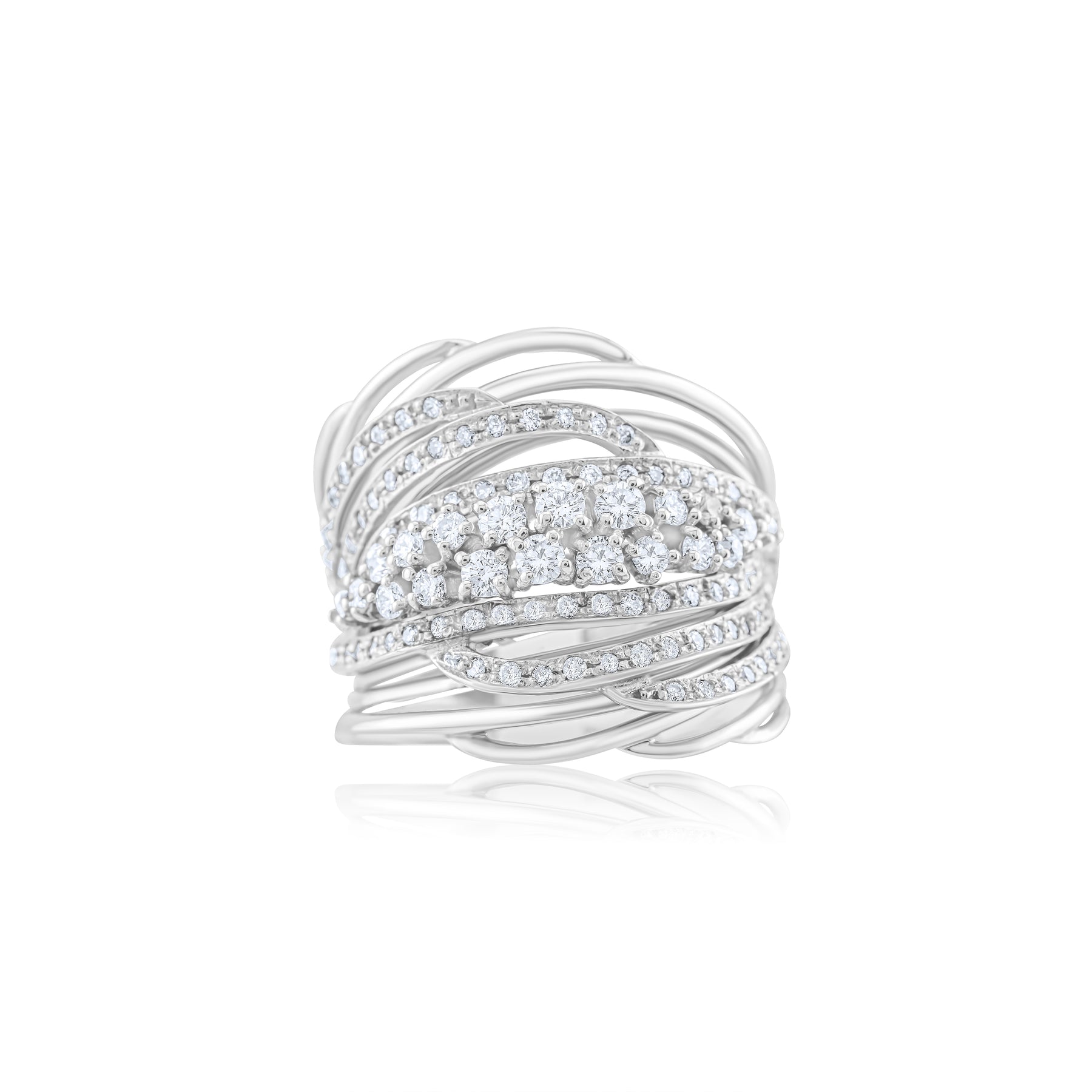 A masterpiece of movement and light, this ring entwines shimmering strands into a radiant cascade of brilliance. Bold yet refined, it evokes the elegance of flowing silk woven with timeless diamonds.