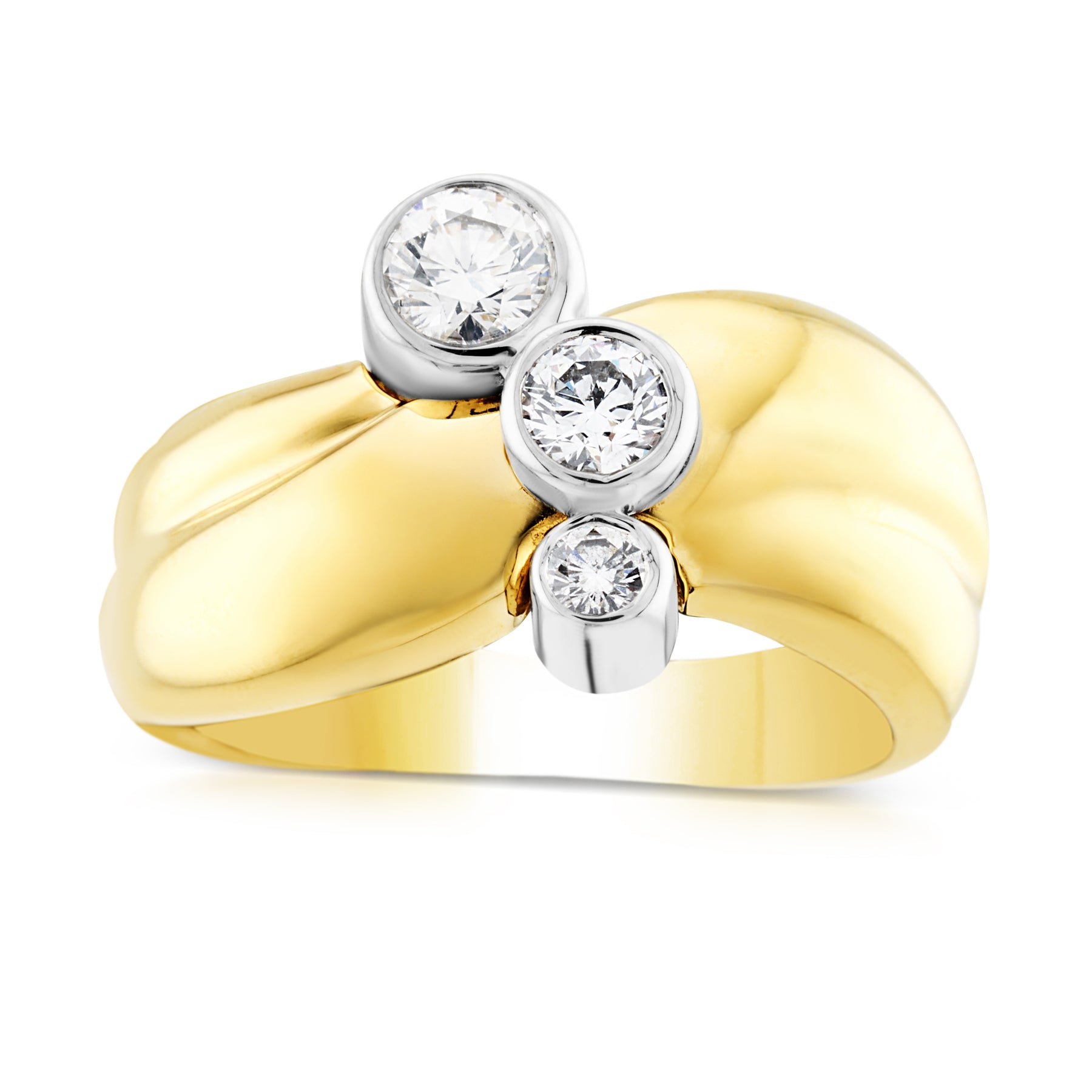 14K Yellow & White Gold Diamond Crossover Ring 3/4 Ct