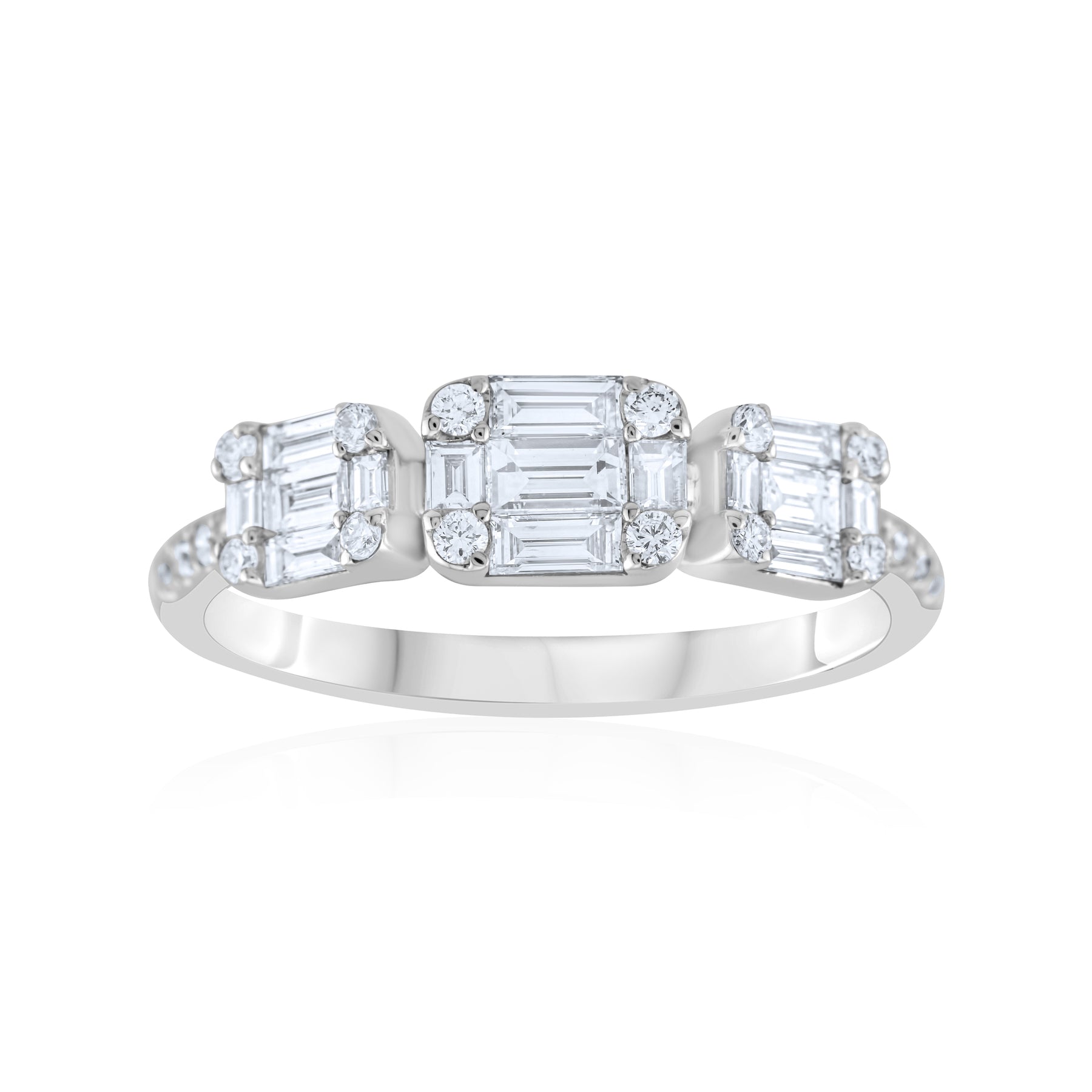 14K White Gold Baguette Diamond Cluster Ring ~ ½ Ct