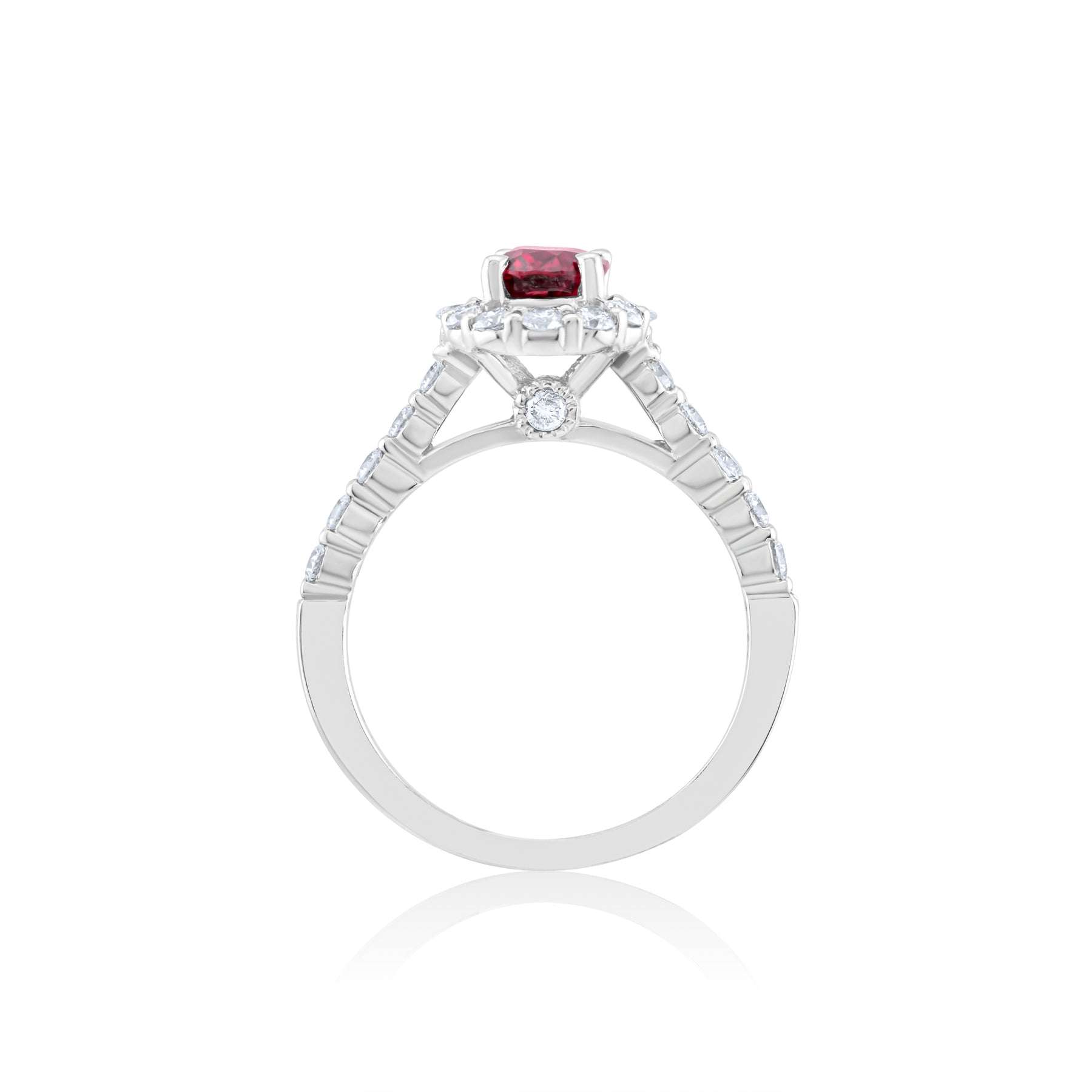 A vivid ruby glows at the heart of a diamond halo, with a secret gem tucked beneath—whispering love only the wearer knows. A timeless treasure of passion, grace, and hidden devotion.