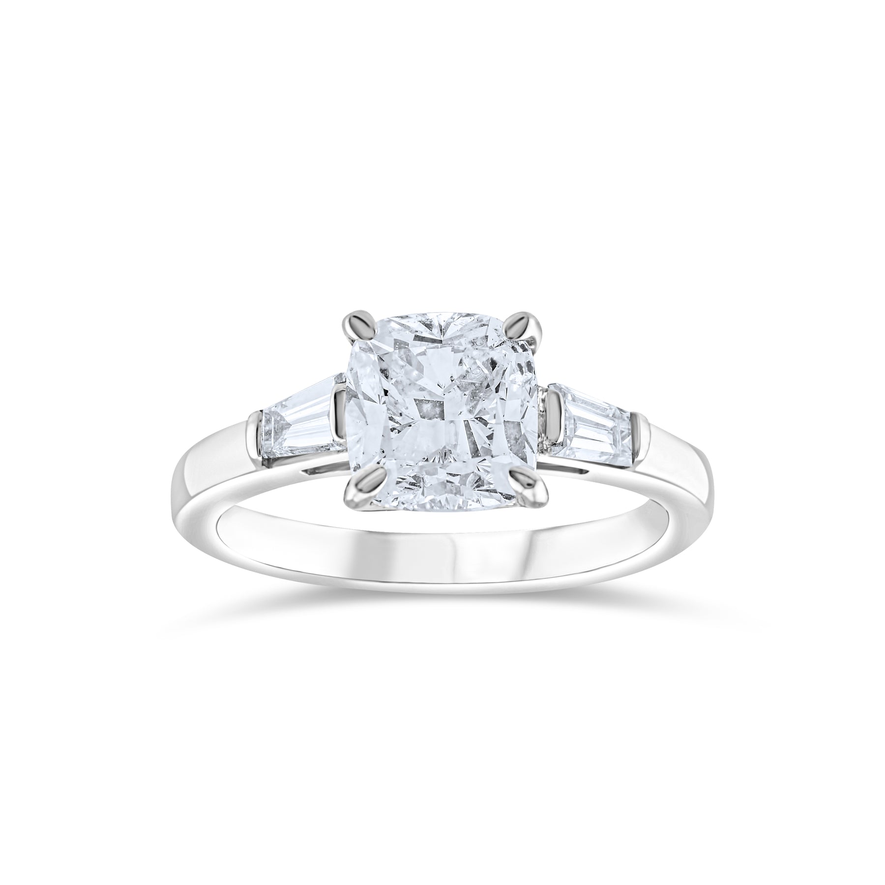 A luminous statement of love, this striking design pairs a romantic cushion silhouette with sleek baguette accents for timeless elegance. Crafted to captivate, it glows with soft fire and bold sophistication. An unforgettable symbol of forever.