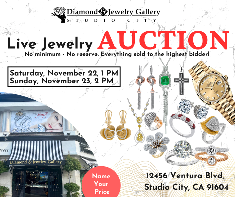 Experience an Auction at the Gallery... Looking for highest quality fine jewelry at the most affordable prices? Visit our beautiful Studio City location to join the Diamond & Jewelry Gallery for one of our exciting LIVE auctions!